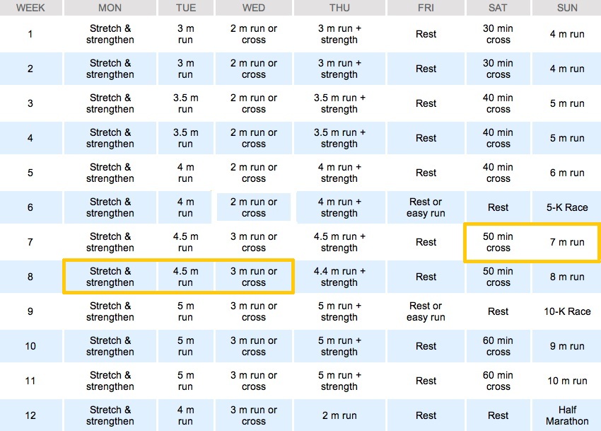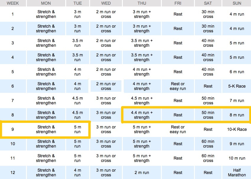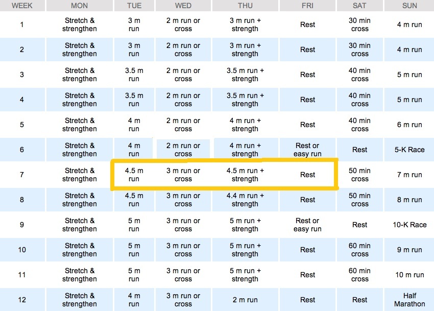 So this week I am skipping Week 10 and jumping straight to Week 11 because my Half Marathon is on 2 weeks. As I look at Week 10, it doesn’t seem like I’m skipping a lot so I don’t think it should be a huge deal.