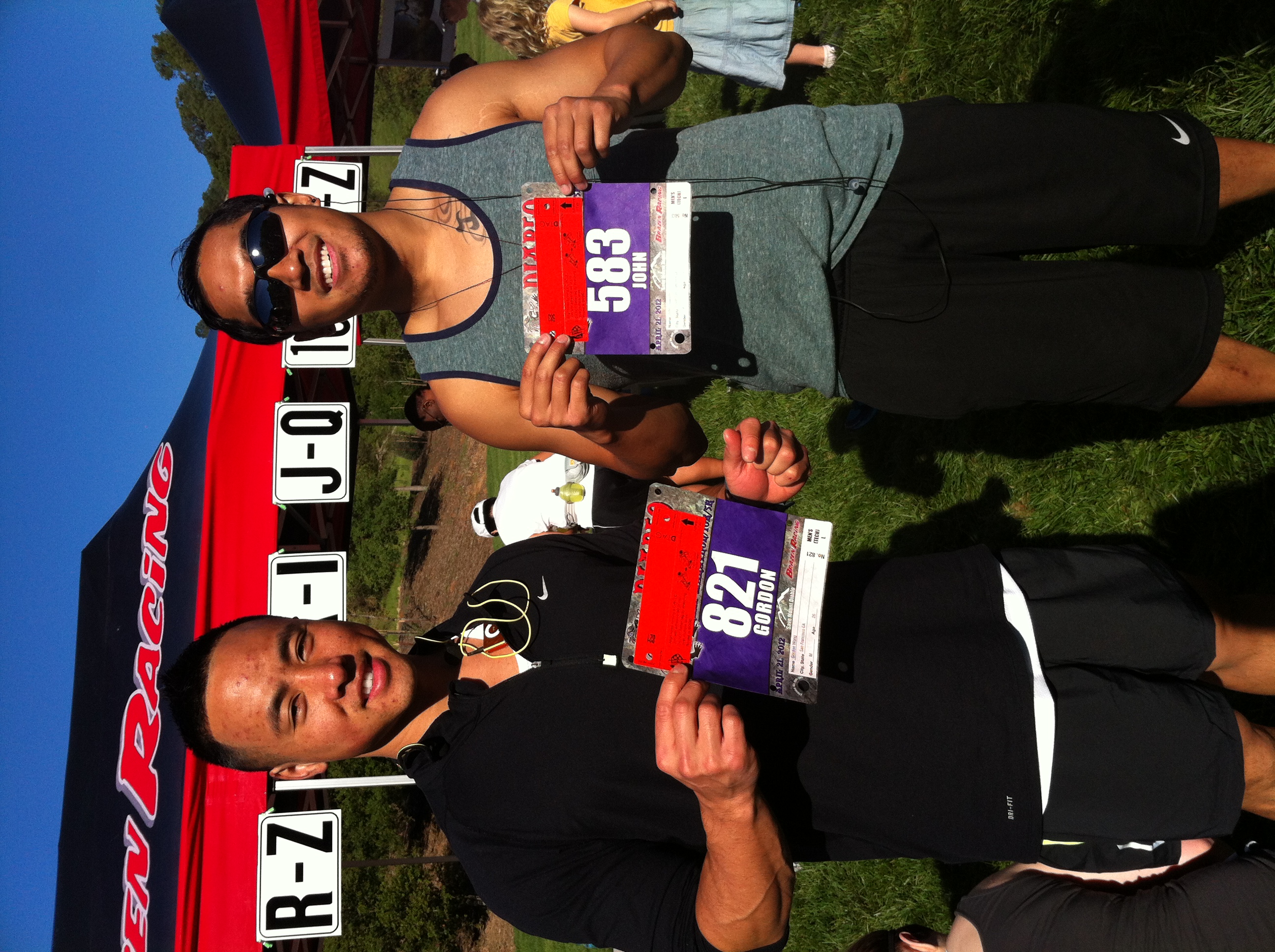 Left: Gordon (1:01:04 = 9th in age group) & Right: JR (1:04:19 = 11th in age group)... Age group = 25-29