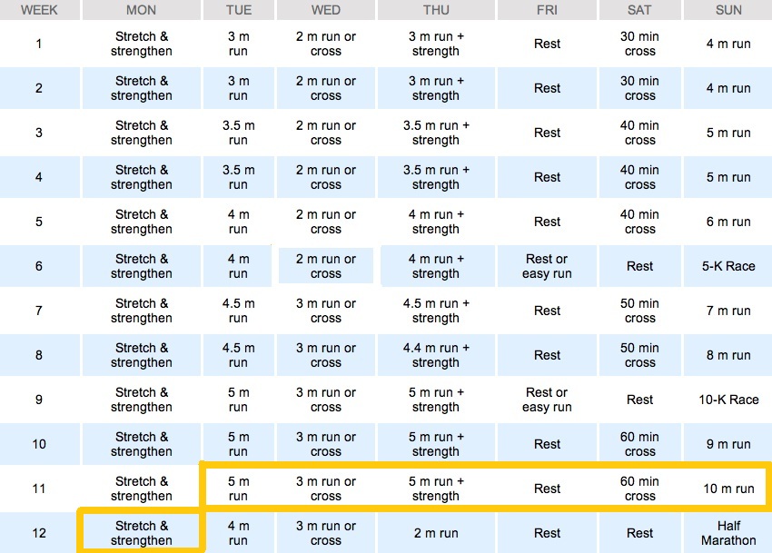 Today I spent a lot of time with the foam roller. I took the knots out of my IT Band, adductors, quads, and calves. I also did a good amount of static stretching for my hamstrings and hip flexors. For my strength training, I did 2 chest, 2 bicep and 2 leg exercises. I didn’t push too hard today; I really want this week to be an easy week because my FIRST EVER HALF MARATHON is just around the corner! Holler!