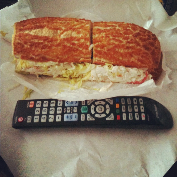 If you ever come to my neck of the woods, you MUST visit Little Lucca . On this rest day, all I did was watch the SF Giants game and consume this bad boy (I did not eat the remote. I just placed it in the photo to show you how ginormous this sandwich is.)